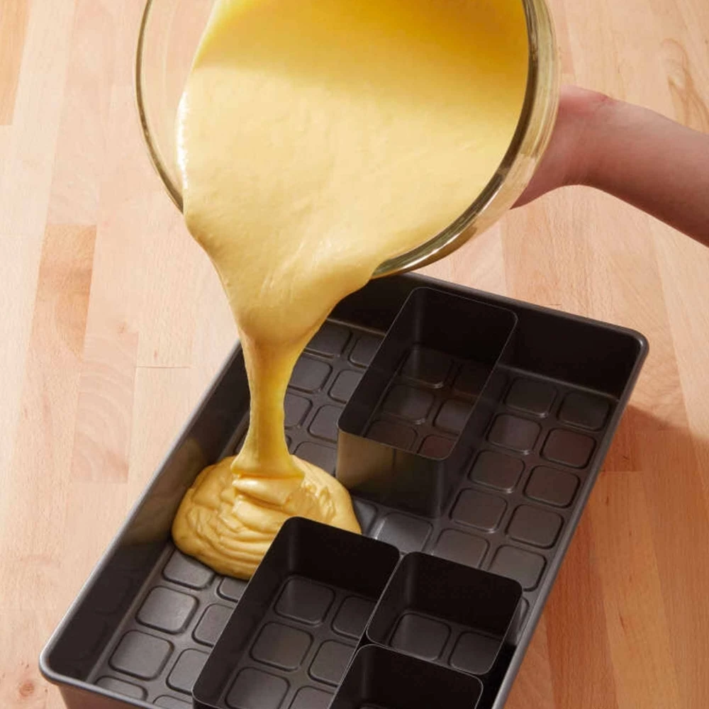 With the different loose inserts you can simply create the desired letter or number. Place the inserts in the baking pan, fill this with the batter and bake the number or letter cake.