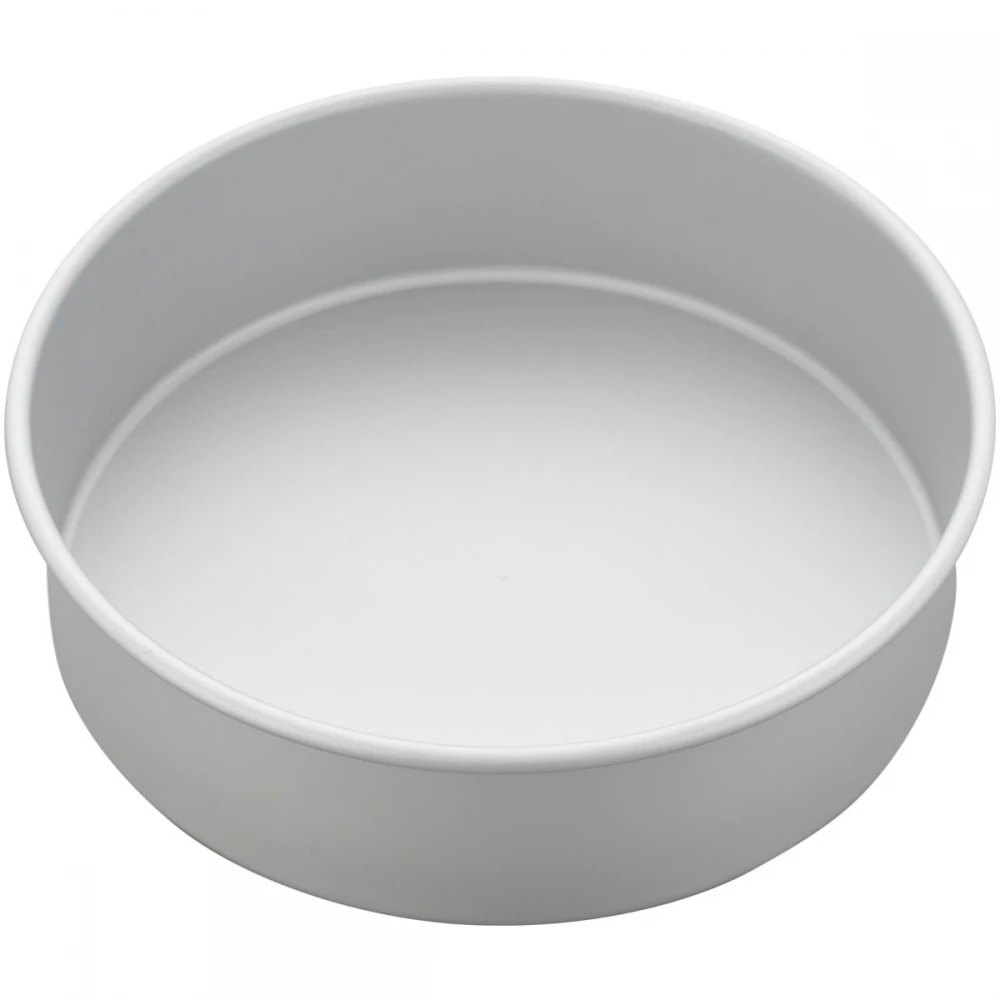 Extra deep Wilton Decorator Preferred® Round pan (10 x 3″), Top brand by Wilton. 25 cm diameter by 7,5cm depth. Round baking pan with extra thick aluminium for excellent heat distribution. Not dishwasher safe.