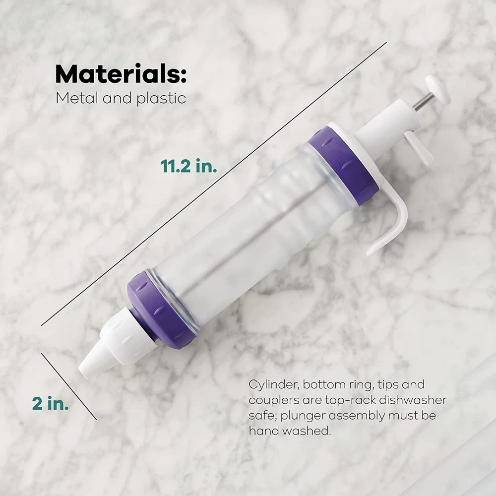 With the included selection of tips, you can make elegant shell borders, stars, rosettes, leaves, bows, ruffles, and a multitude of flowers. With the thumb lever, icing flow control has never been easier, making it easy to make your sweets look great. The pull-out plunger eliminates icing waste as it scraps the edge of the barrel like a spatula as you decorate.