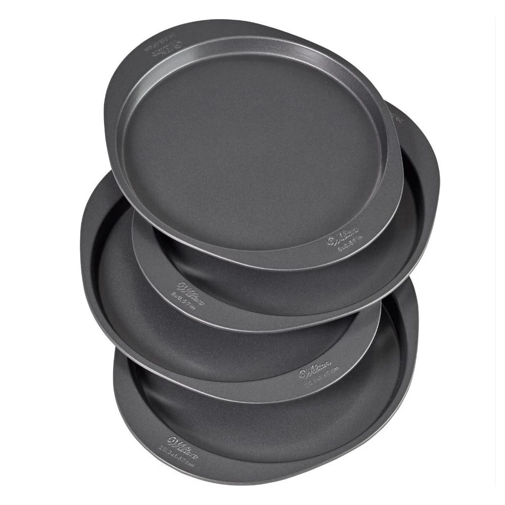 Make beautiful multilayer cakes with this baking pan set from Wilton. With this Wilton set you can make a four-layer cake with ease for the definite “wow” factor! Ombre cakes, rainbow cakes, naked cakes, classic tortes and more… these pans make tall trendy layered cakes easy to bake.