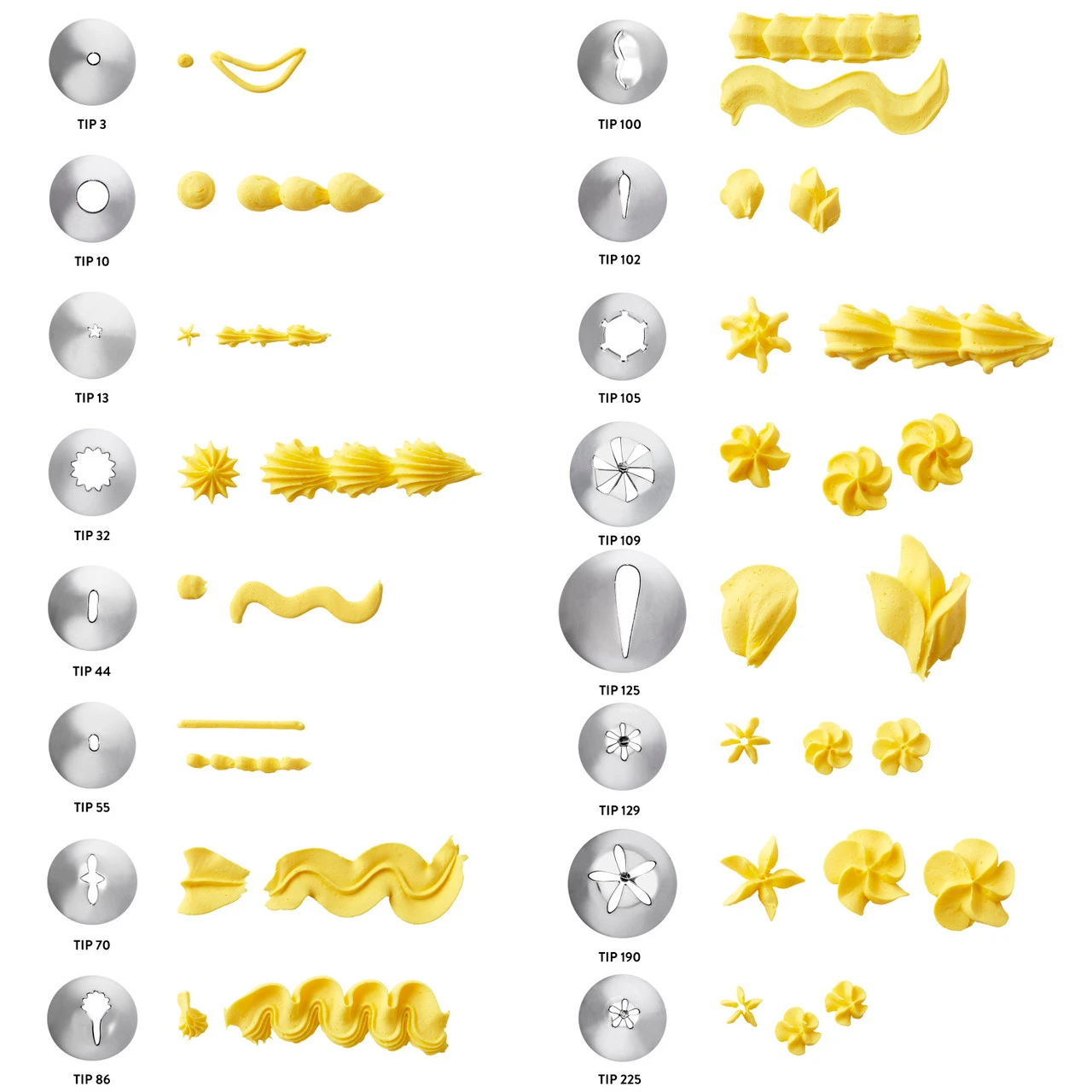 - Add gorgeous detail to cakes and other sweet treats using this icing decorating tip set