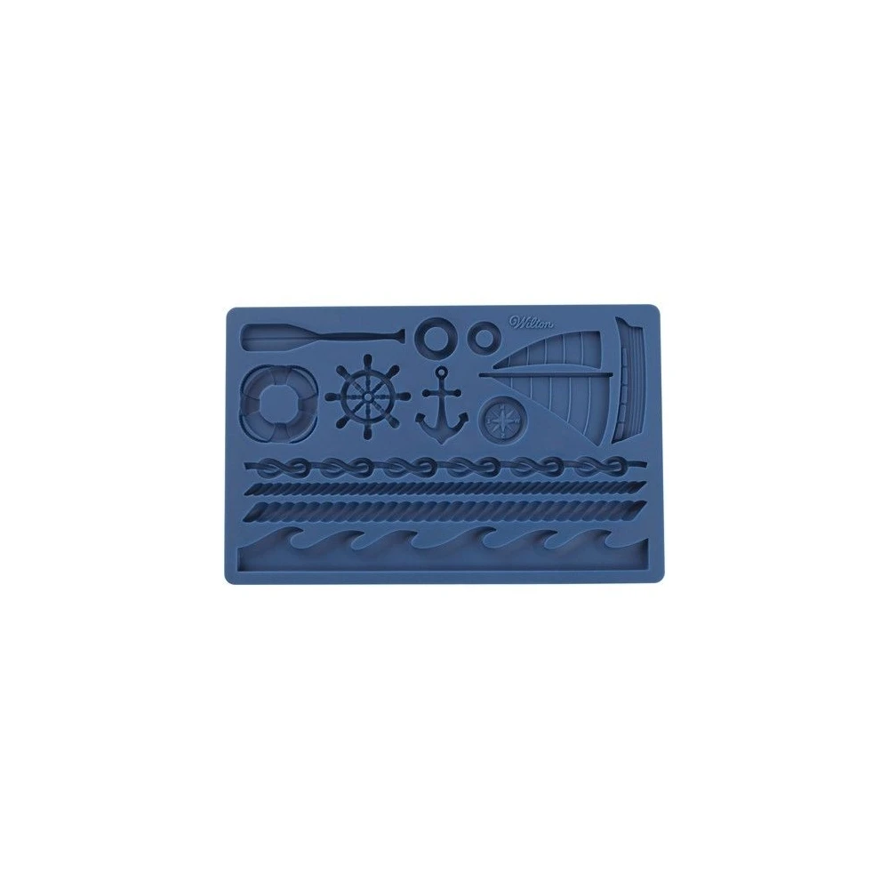A nautical or boot themed cakes is easy to decorate with this handy silicone mold from Wilton! The mold contains various figures and borders that are perfect for decorating a cake. The figures such as an anchor, wheel and life buoy can also be used for decorating cupcakes.