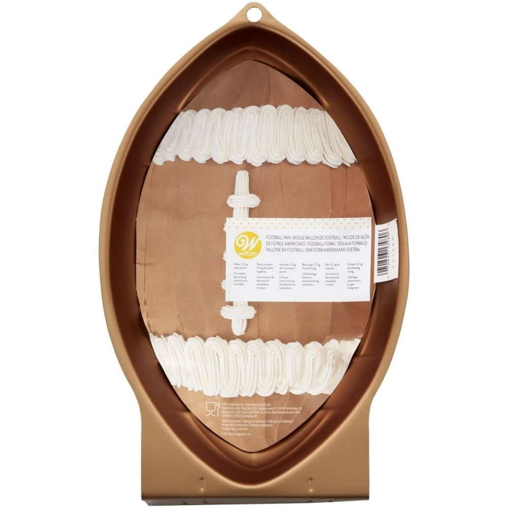 Make a 3D football cake with this Wilton rugby pan! With this baking pan, you can easily make a realistic ball cake.